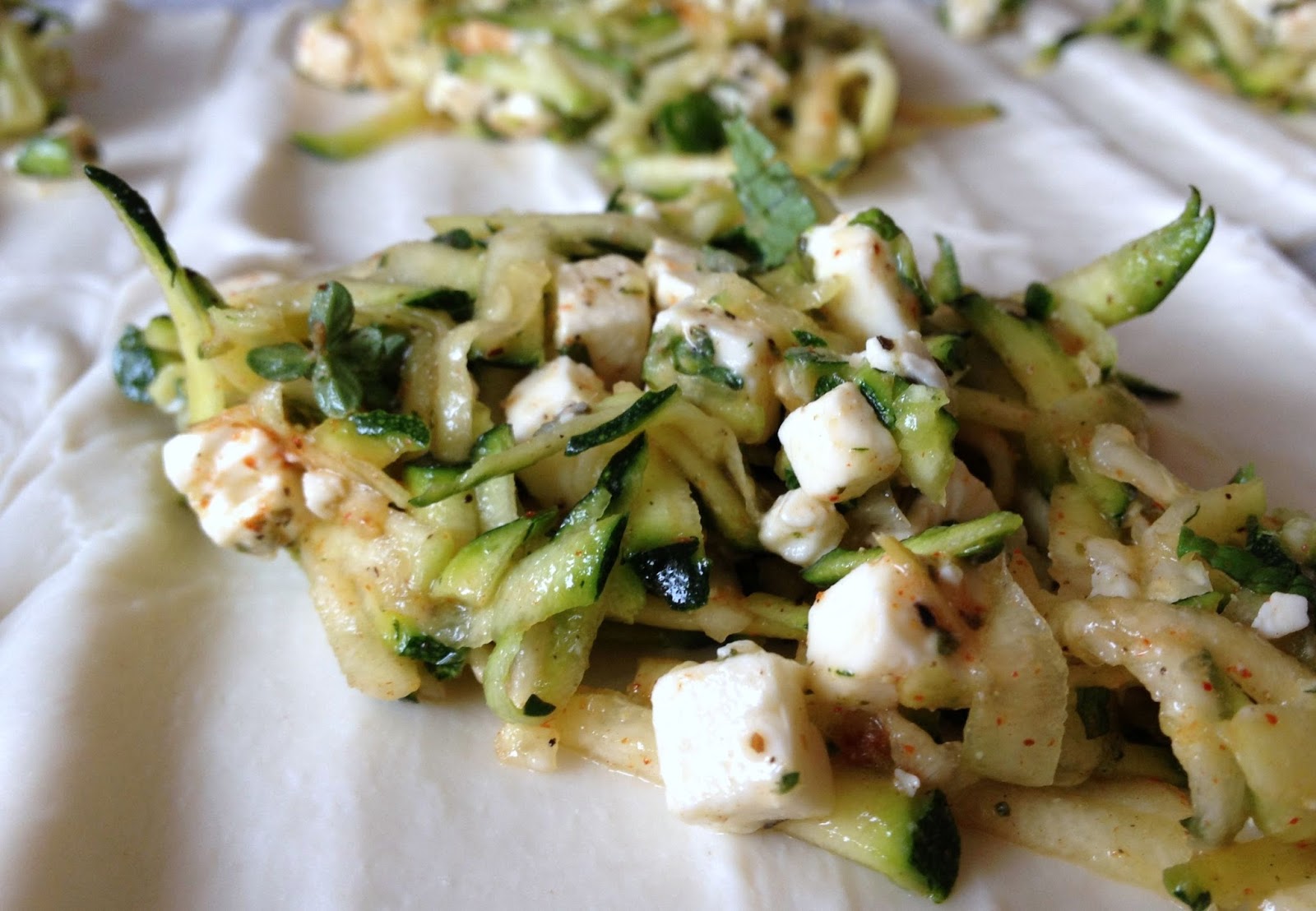 2 EL Zucchini-Füllung von den Blätterteigtaschen