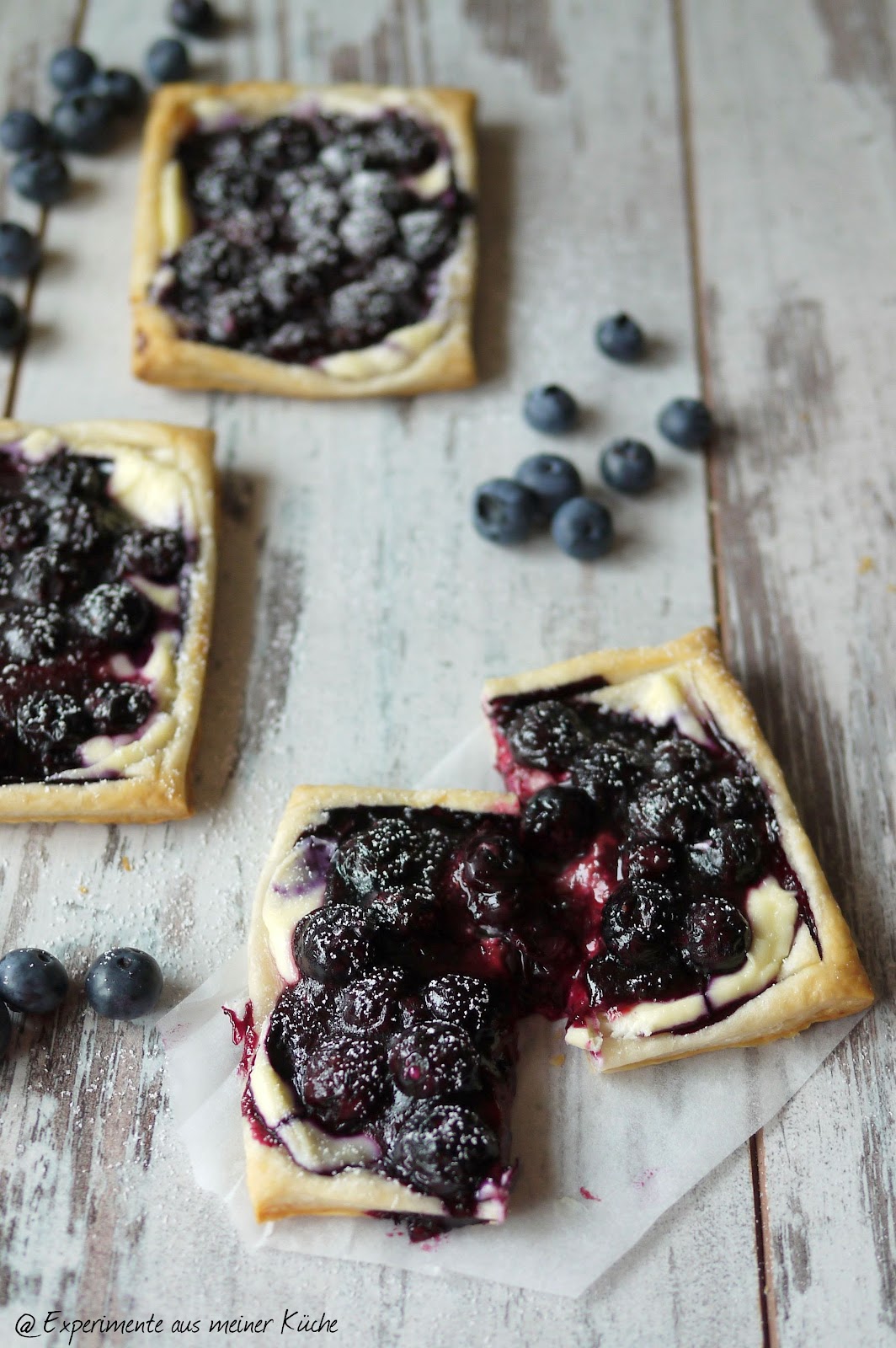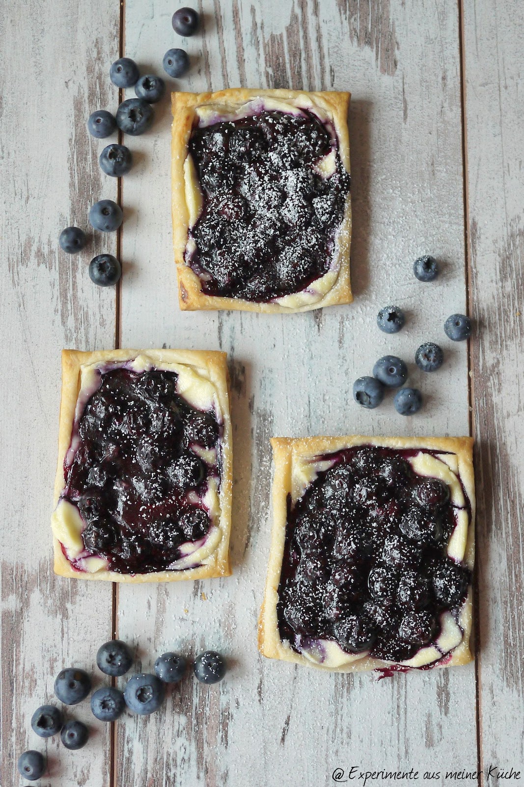 Ist euch etwas aufgefallen? Ich habe schon lange nichts mehr mit Blätterteig gemacht. Ich weiß gar nicht warum, aber irgendwie hatte ich mich eine zeitlang daran satt gegessen. Kennt ihr das? Vor ein paar Wochen ist dann doch mal wieder ein Päckchen im Einkaufswagen gelandet und wartete seither auf seine Verwendung. Da das Mindesthaltbarkeitsdatum immer näher rückte, habe ich am Montag ganz spontan beschlossen daraus eine Kleinigkeit zum Kaffee zu zaubern. Einfach so und nur für uns. Keine Gäste, kein Anlass! Natürlich sollte es nach der Arbeit schnell gehen, so dass ich mich für eine Variante mit Blaubeeren und Frischkäse entschieden habe: