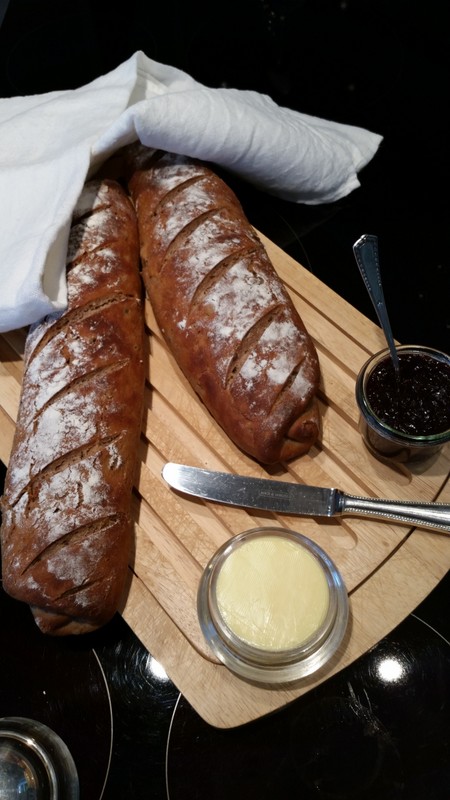 Tipp: Direkt nach dem einschieben der Baguettes etwas Wasser auf den Boden des Ofens geben. Dadurch entsteht ein besseres Backklima und das Baguette bekommt eine schönere Kruste.