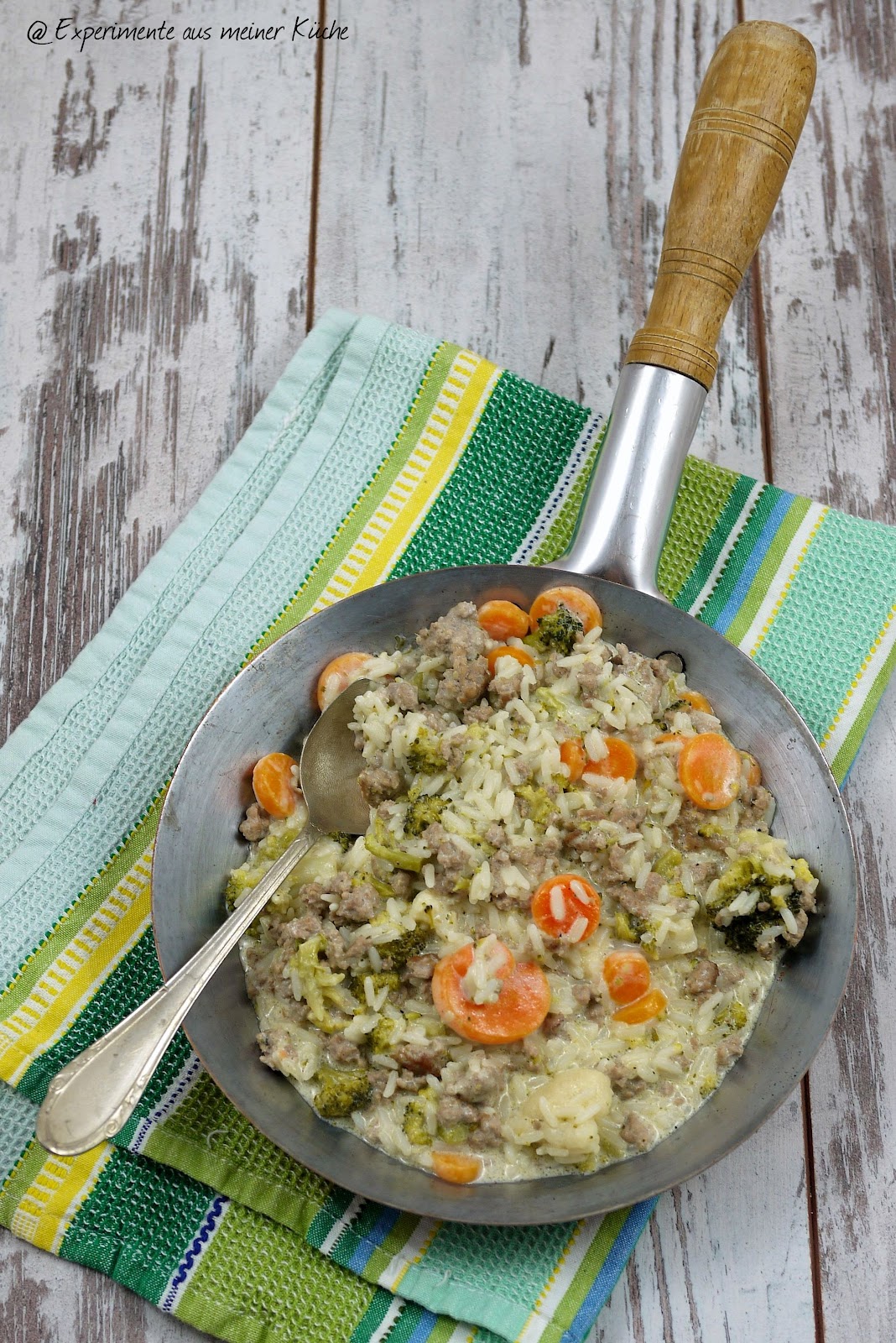 Hackfleisch in einer großen Pfanne anbraten. Mit Salz, Pfeffer und RUB Mediterranean Roasts (oder anderen Kräutern) würzen. Frisches Gemüse klein schneiden, zum Hackfleisch geben und kurz mitbraten. TK-Gemüse erst später zufügen, da es sonst zu weich matschig wird. Mit Wasser ablöschen, Brühe dazugeben und Crème fraîche unterrühren. Aufkochen lassen und den Reis zufügen. Auf kleiner Flamme etwa 12 – 15 Minuten köcheln lassen, bis der Reis weich ist. Evtl. noch ein wenig Wasser dazugeben. Das TK-Gemüse kann zusammen mit dem Reis oder kurze Zeit später ebenfalls dazugegeben werden. Wie lange ihr das Gemüse mitkochen lassen solltet, hängt von dem Gemüse ab. Zum Schluss noch mit Salz und Pfeffer abschmecken und servieren.