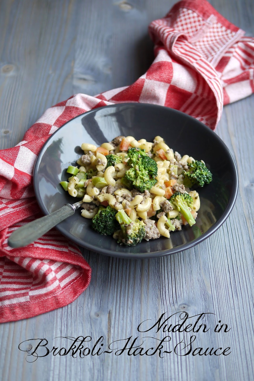 einseitigen Ernährung in den letzten Tagen) und Nudeln (da schon fast zwei Wochen nicht mehr gegessen?!). Und damit der Herr des Hauses auch zufrieden ist, habe ich das ganze mit Hackfleisch kombiniert. Dabei herausgekommen sind diese Nudeln mit Brokkoli-Hack-Sauce: