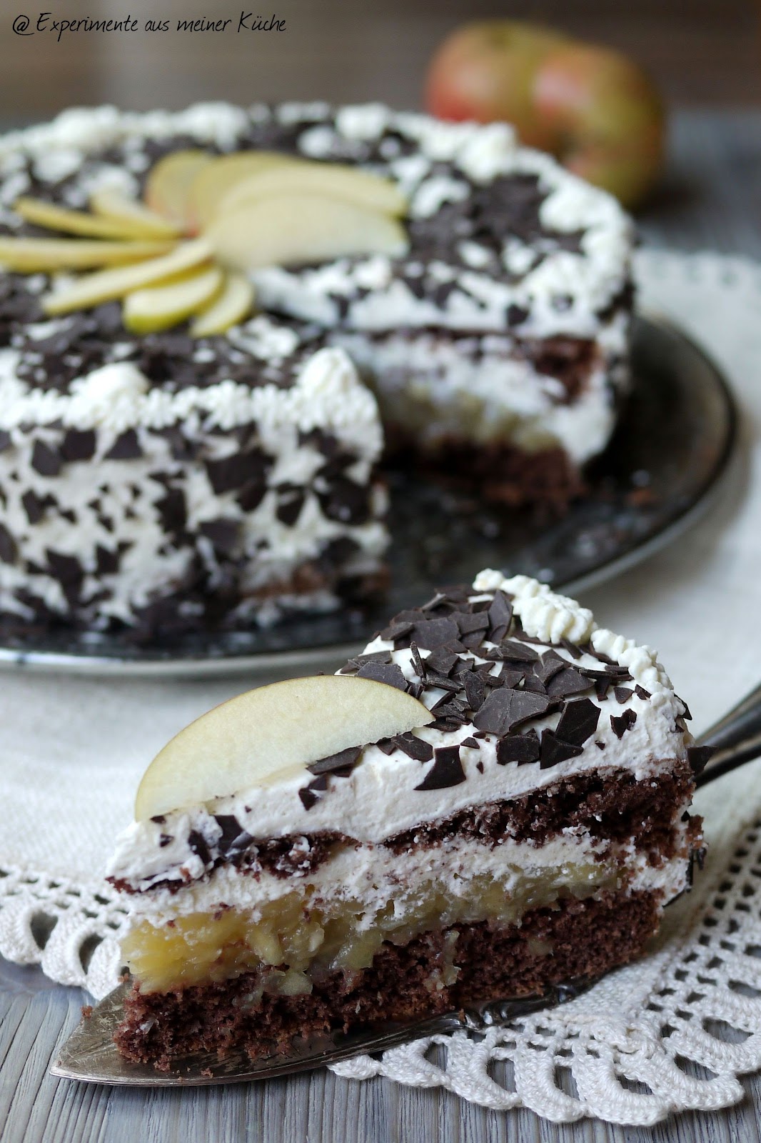 Schoko Apfeltorte mit Sahne „Schwarzwälder Art“