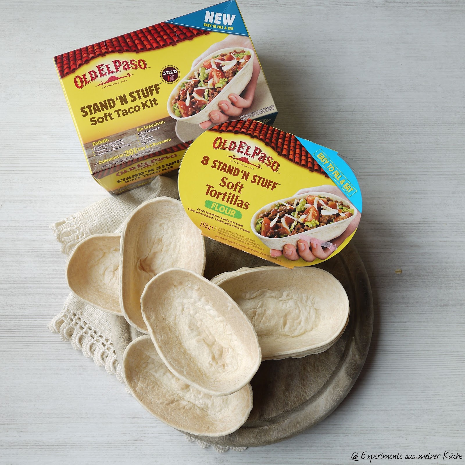 Die Stand´n Stuff Soft Tortillas gibt es übrigens in zwei Varianten. Als Soft Taco Kit mit einer passenden Gewürzmischung für eine mexikanische Hackfleischfüllung oder nur die Schalen, die man nach Belieben füllen kann.