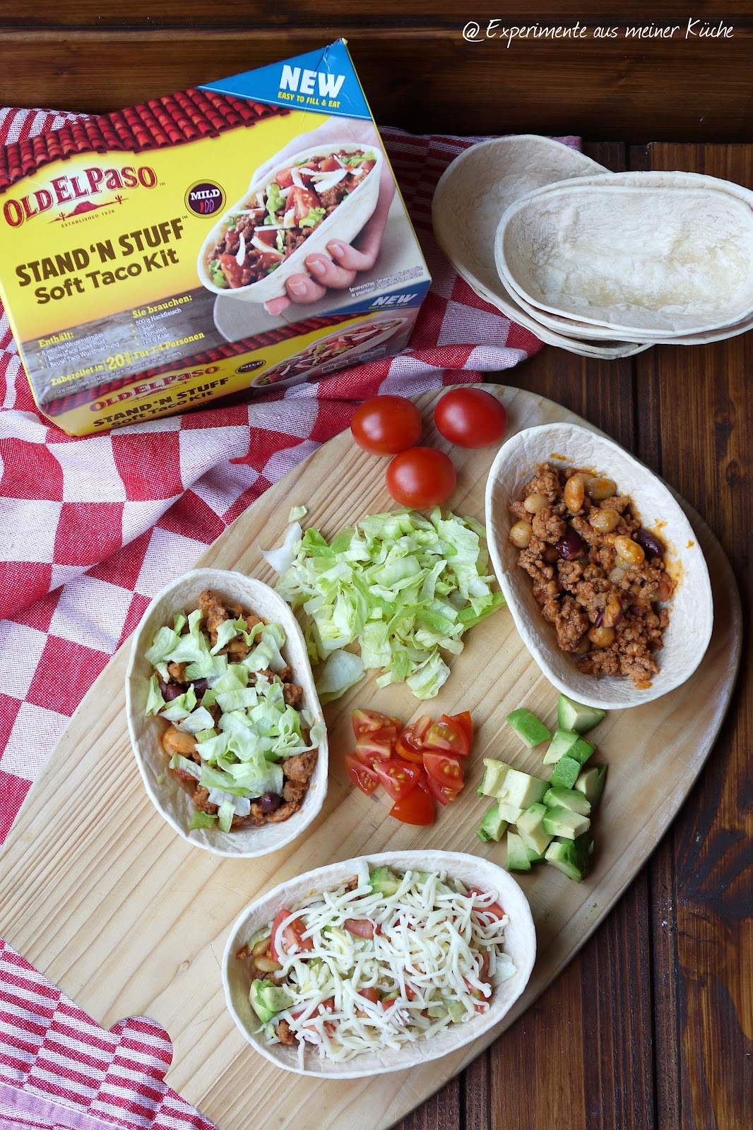 Ihr wisst ja, dass ich ein Fan der schnellen Küche bin. Meine Gericht sind einfach, unkompliziert und meistens lecker 😉 Ich muss nicht immer alles selber herstellen und greife auch gerne auf fertige Produkte zurück. So wie auf die neuen Stand´n Stuff Soft Tortillas* von Old El Paso. Tortillas mag ich ja sowieso sehr gerne und in dieser Schalen-Form lassen sie sich nach Belieben füllen. Ich habe mich für eine überbackene Variante mit Hackfleisch, Avocado, Salat und Tomaten entschieden: