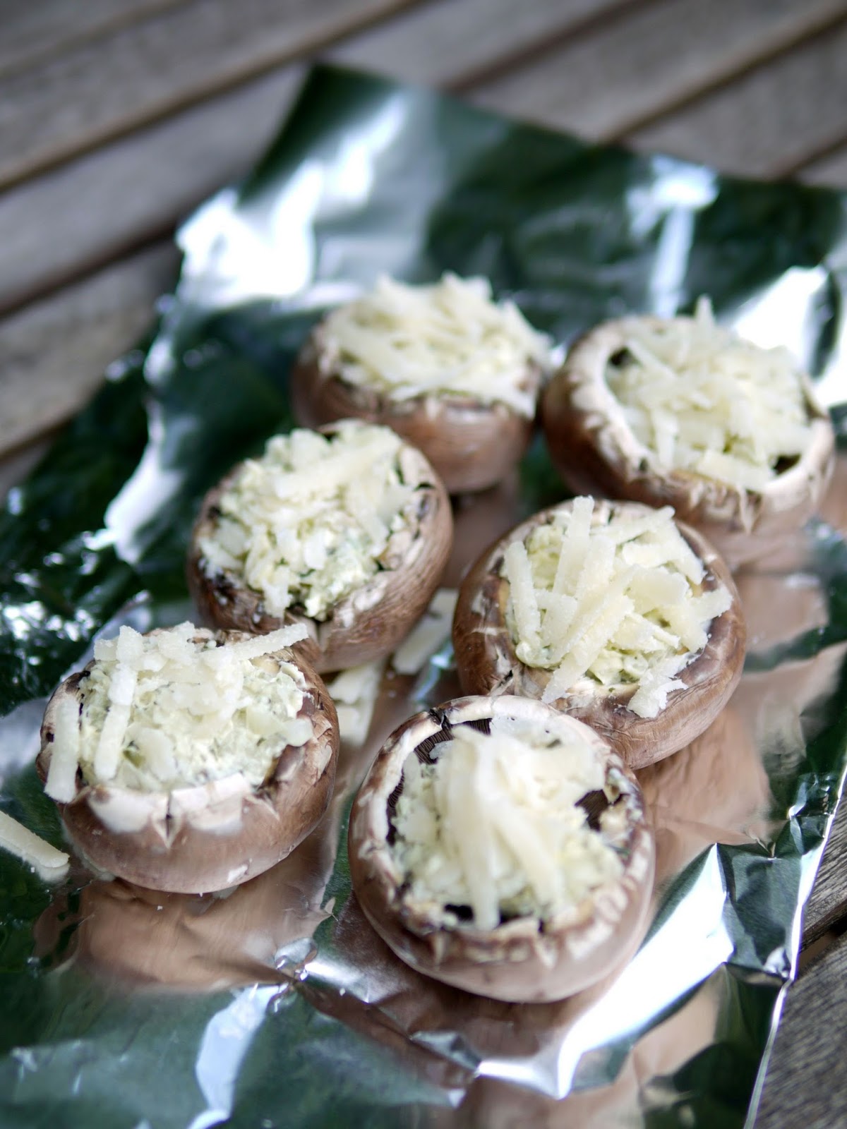 Neben Wurst und Fleisch grille ich auch immer gerne Gemüse und/oder Obst. Naja ich selbst grille eigentlich nicht. Dafür ist der Herr des Hauses verantwortlich. Aber ich bereite alles vor. Oft sind es einfach nur Maiskolben, aber wenn wir für Gäste grillen, probiere ich gerne verschiedenste Rezepte aus. So kommen bei uns auch schon mal Champignons auf den Grill.